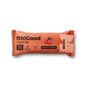 Oh!Good Protein Bar is rich in vegetable protein, fibre and has added vitamins and minerals. And let's not forget - it's covered in crunchy chocolate. Although low in sugar, the bar tastes fantastic, making it suitable for any diet.